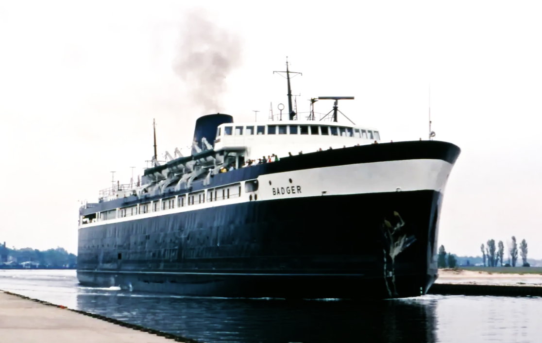 Today, the S.S. Badger makes daily sailings between Ludington, MI and Manitowoc, WI, carrying passengers, automobiles, and semi-trailers during the summer months.