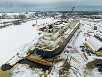 - American Mariner is afloat again in dry dock at Superior, WI’s Fraser Shipyards. David Schauer image, March 22